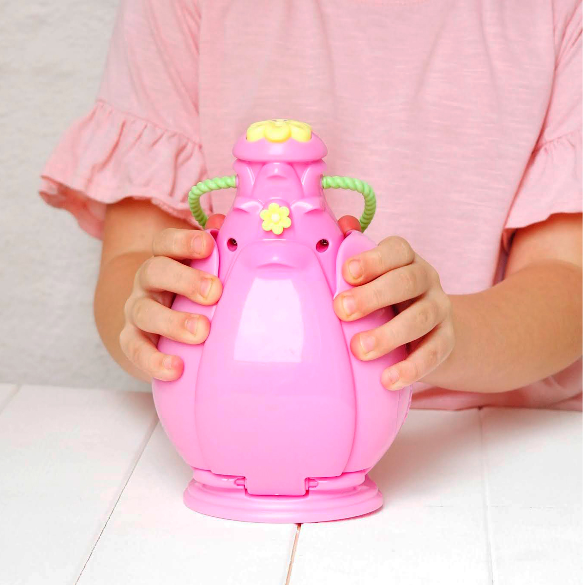 Fiecare papusica are o superputere: daca ii scufundati picioarele in apa sau o puneti intr-un compoartiment special din interiorul unei flori, aceasta va straluci!