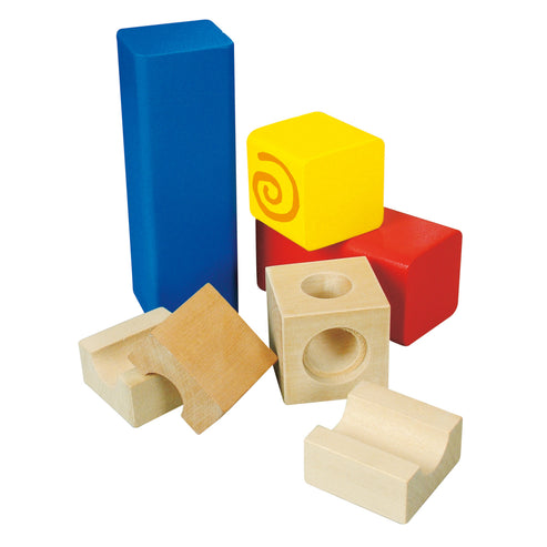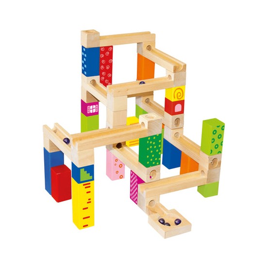 Marbles Run - Circuit cu bile integral din lemn, cu multiple componente individuale ce se pot reaseza in trasee diferite.