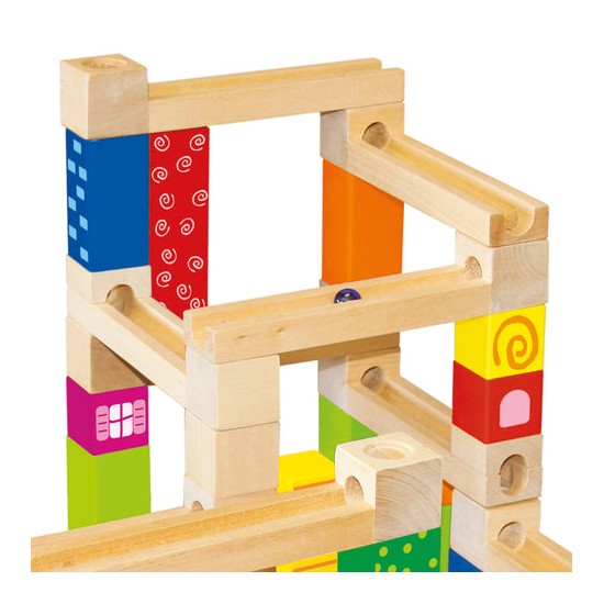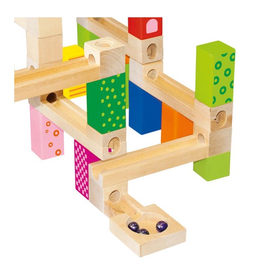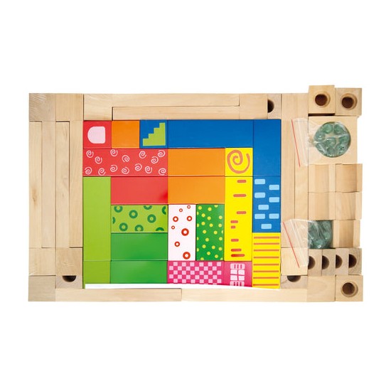 Set de construit din lemn Labirint, Marble Run, 66 piese