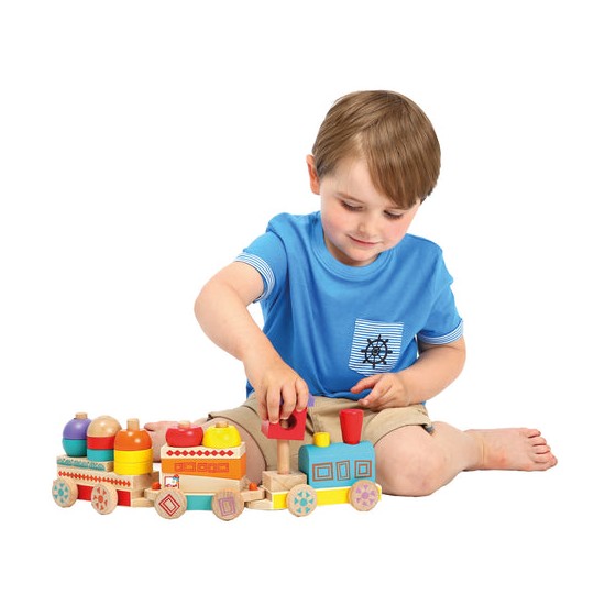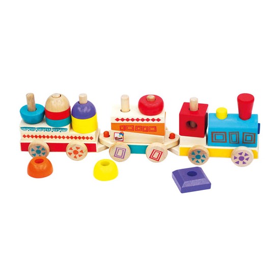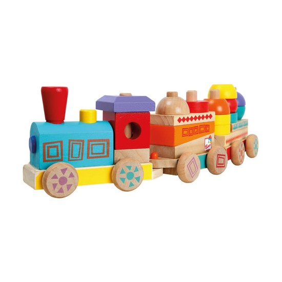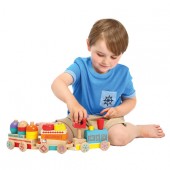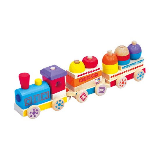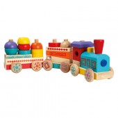 Tren din lemn multicolor cu vagoane, Maxi, 21 piese