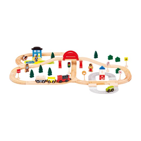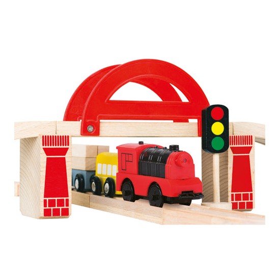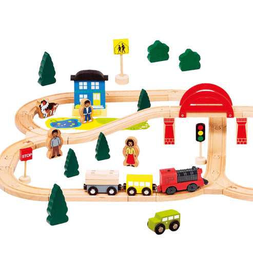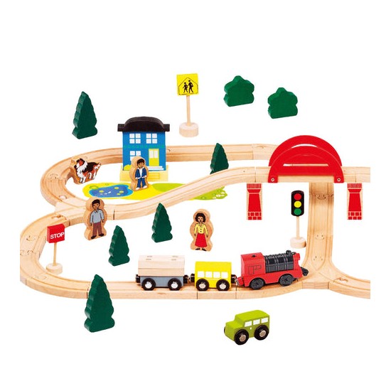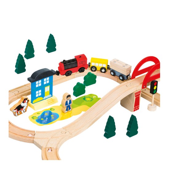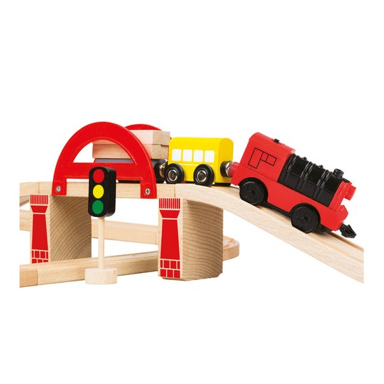 E greu pentru un tren sa urce dealul, tragand dupa el doua vagoane, insa distractia incepe de indata ce porneste la vale. Mai mult,veti putea amenaja calea ferata cu figurinele propuse.