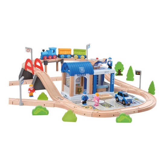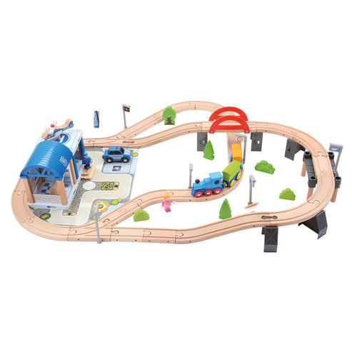 E greu pentru un tren sa urce dealul, tragand dupa el doua vagoane, insa distractia incepe de indata ce porneste la vale. Mai mult,veti putea amenaja calea ferata cu figurinele propuse.