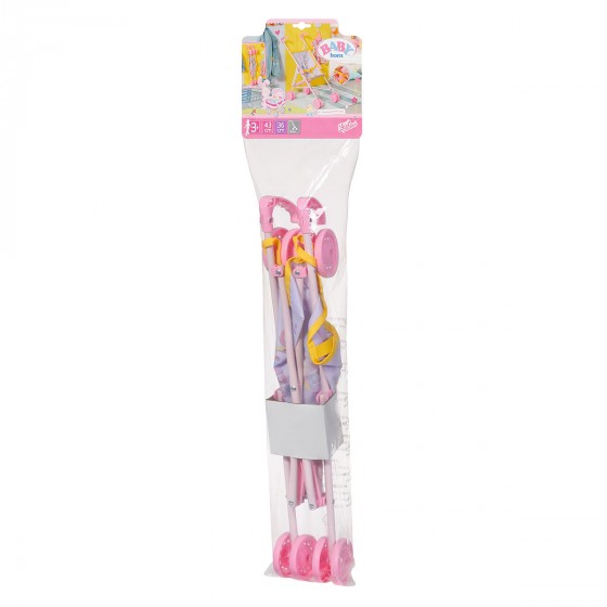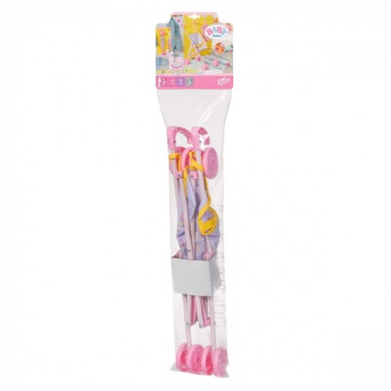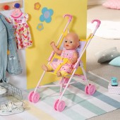 Caruciorul pliant BABY BORN pentru papusi contribuie la o plimbare usoara si distractiva! Compact si usor, pentru ca papusa sa se pozitioneze confortabil in carucior - exista centuri de siguranta!