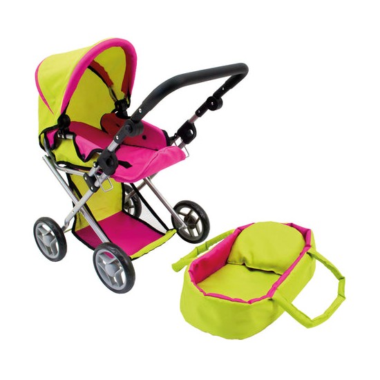 Carucior pentru papusi, verde-roz
