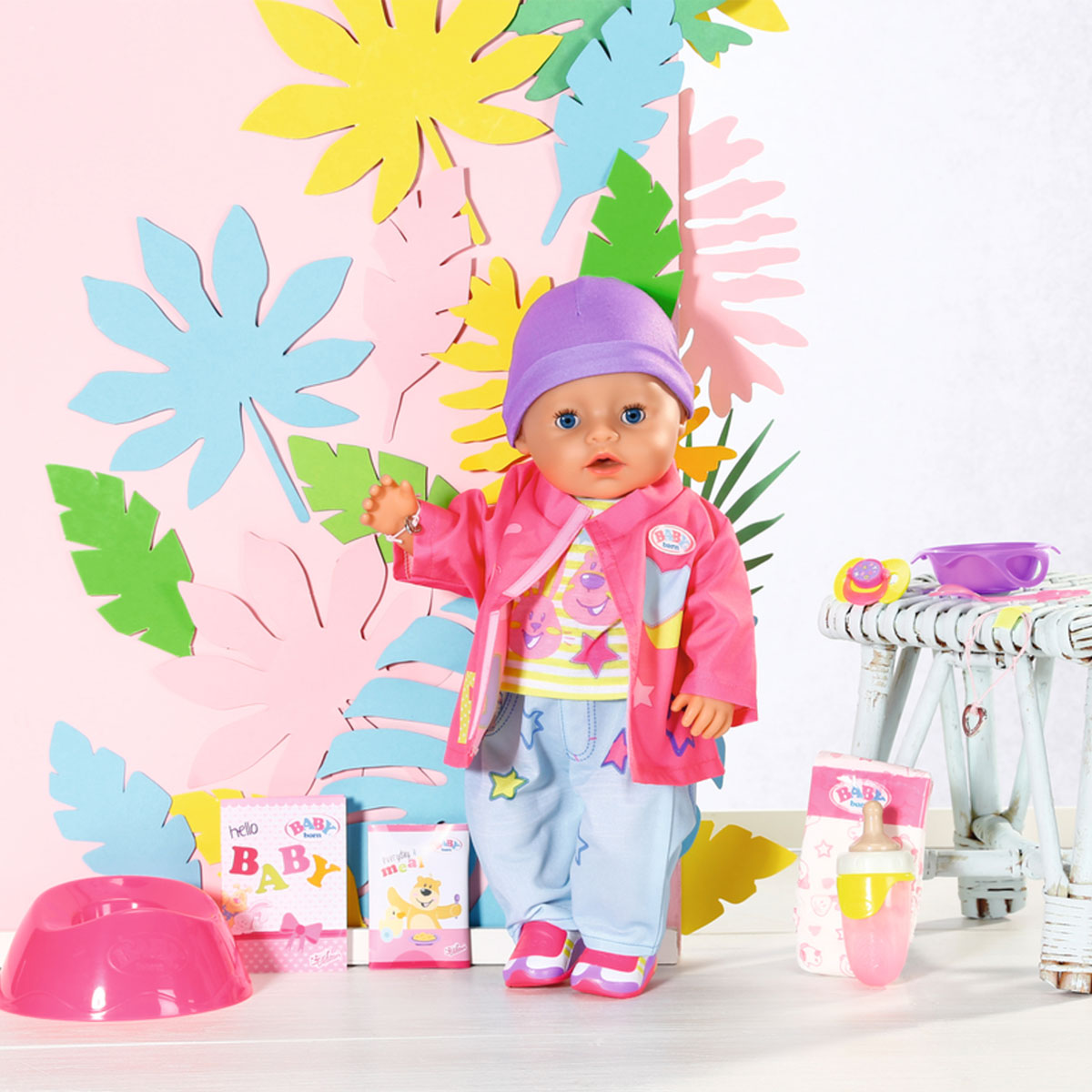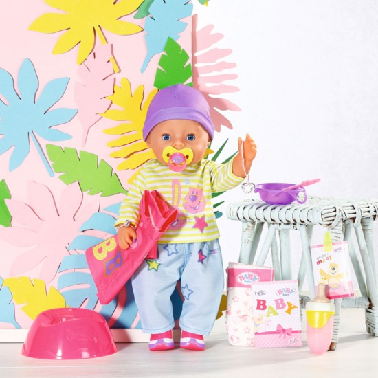 Papusa bebelus Baby Born 43 cm seria Imbratisari blande Fetita cu haine universale si accesorii
