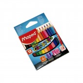 Set 12 creioane colorate, scurte, triunghiulare, in cutie de carton. Fabricate cu pigmenti de calitate superioara, mina rezistenta, corp din lemn moale, usor de ascutit.