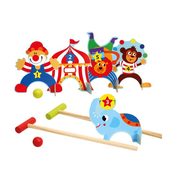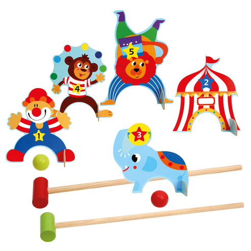 Set de joaca croquet din lemn pentru copii, Circ, 14 piese
