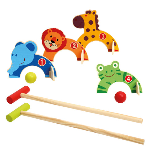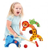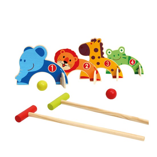 Set de joaca croquet din lemn pentru copii, Zoo, 12 piese