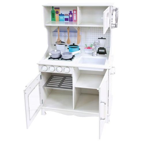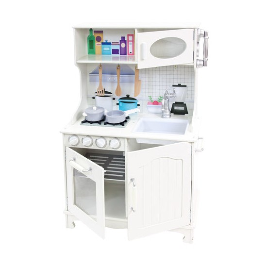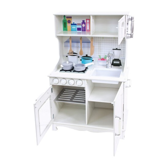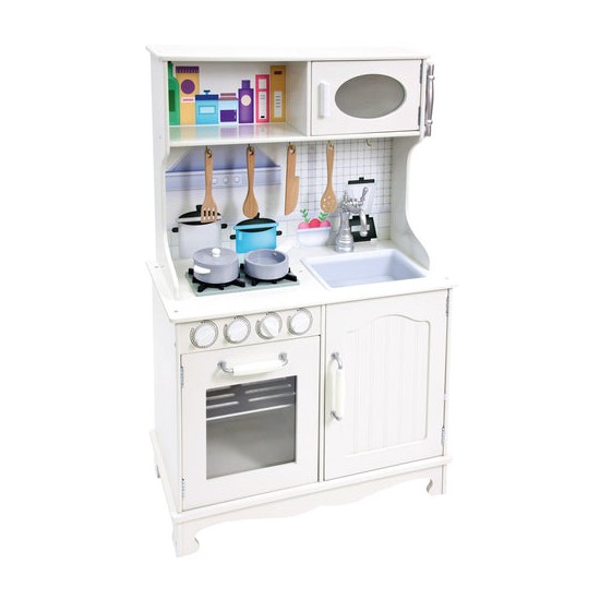 Bucatarie din lemn pentru copii, culoare alba, cu accesorii