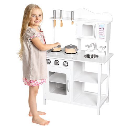 Bucatarie din lemn pentru copii Amelie, culoare alba, cu accesorii