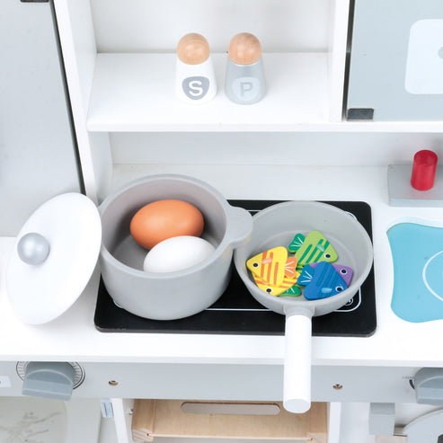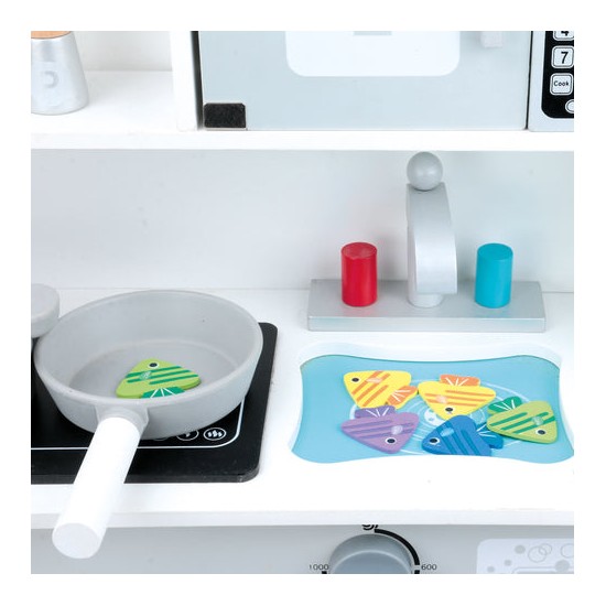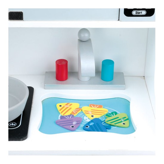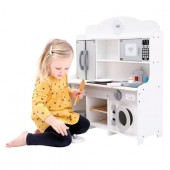 Datorita bucatariei, copiii au posibilitatea de a-si imbunatati abilitatile de gatit. Setul dezvolta coordonarea motrica si vizuala. Bucataria este adaptata inaltimii unui copil. Aceasta este confectionata din lemn, deci poate fi utilizata pentru mai multi ani.