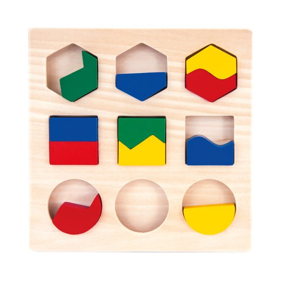 Daca esti in cautarea unui joc educativ pentru un copil, ai gasit ceea ce trebuia! Seturile puzzle Bino sunt adevarate creatii impresionante datorita detalizarii unice si a materialelor calitative utilizate in procesul de creare al jucariilor. Jocul contine o tabla cu 9 forme create din doua jumatati. Micutii vor invata sa perceapa culorile, sa pozitioneze corect formele pe tabla de joc si sa invete geometria printr-o metoda distractiva.