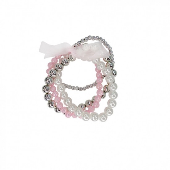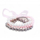 Perle moi si panglici roz se unesc in acest set de bratari de 4 piese. Pot fi purtate impreuna sau separat, in functie de tinuta micii fashioniste. Un sentiment de frumusete si armonie poate fi usor dezvoltat prin accesorizarea cu bratari de la Great Pretenders. Toate cele patru bratari Pearly to Wed pot fi purtate fie pe brat, fie pe glezna, totul depinde de gustul si starea de spirit a micii tale fashioniste. Bijuteriile pentru copii ale acestui brand vor deveni un punct culminant in colectia de bijuterii a fetitei. Decoratiunile sunt realizate din materiale ecologice: acrilic, polietilena, policarbonat, nailon.
