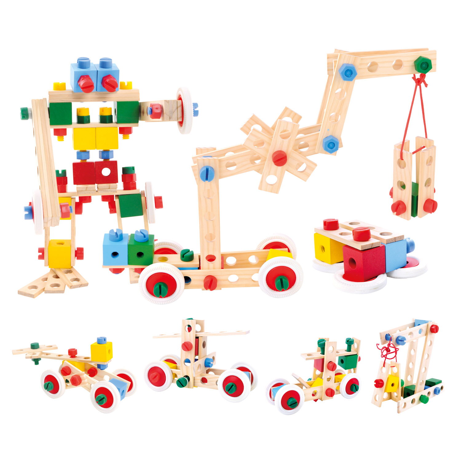 Set de constructie cu blocuri din lemn suruburi din plastic Markury120 elemente