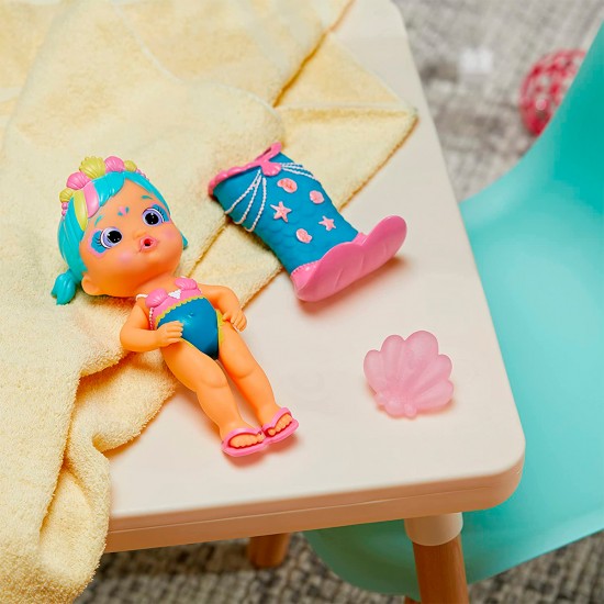 Papusa Lovely 23cm - cu coada de sirena care isi schimba culoarea si scuipa apa Bloopies