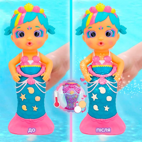 Daca pui papusa in apa calda, unele elemente ale cozii isi vor schimba culoarea! Iar daca ii dai papusei sa bea apa cu sapun, aceasta va stropi sau va sufla cu bule!