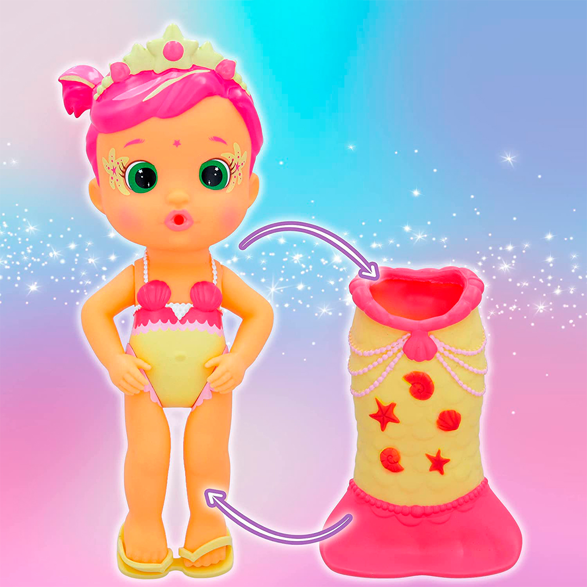 Daca pui papusa in apa calda, unele elemente ale cozii isi vor schimba culoarea! Iar daca ii dai papusei sa bea apa cu sapun, aceasta va stropi sau va sufla cu bule!