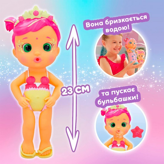 Papusa Luna 23cm - cu coada de sirena care isi schimba culoarea si scuipa apa Bloopies