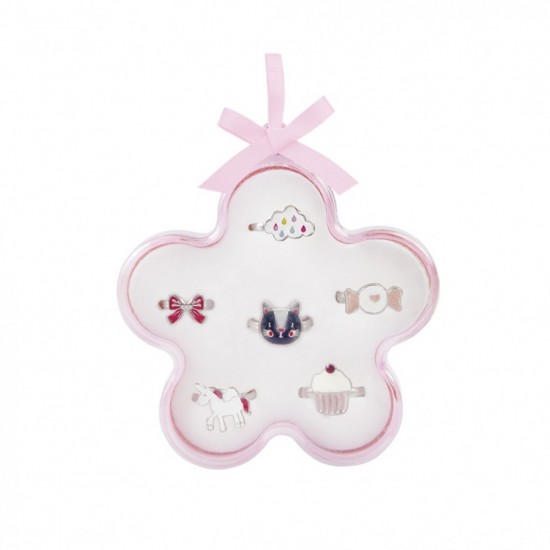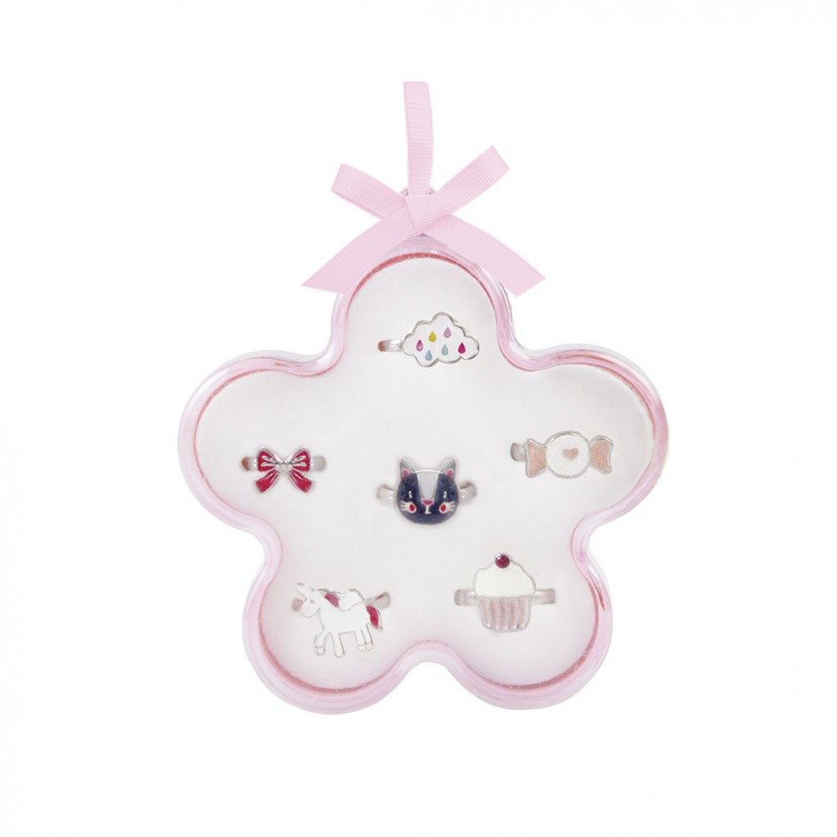 Setul de inele Sweet Treats al Great Pretenders este remarcabil prin designul unic al pieselor incluse in set. Sunt 6 inele in total. In fiecare zi poti purta unul nou: sub forma de nor, o fundita, un pisoi, o bomboana, un unicorn sau un desert dulce. Setul de inele Sweet Treats este conceput pentru fete cu varsta peste 3 ani. Produsele sunt realizate din materiale de calitate: Bumbac, zinc, poliester. Confectionat din mase plastice si materiale textile. Inelele nu contin metale pretioase sau semipretioase si pietre.