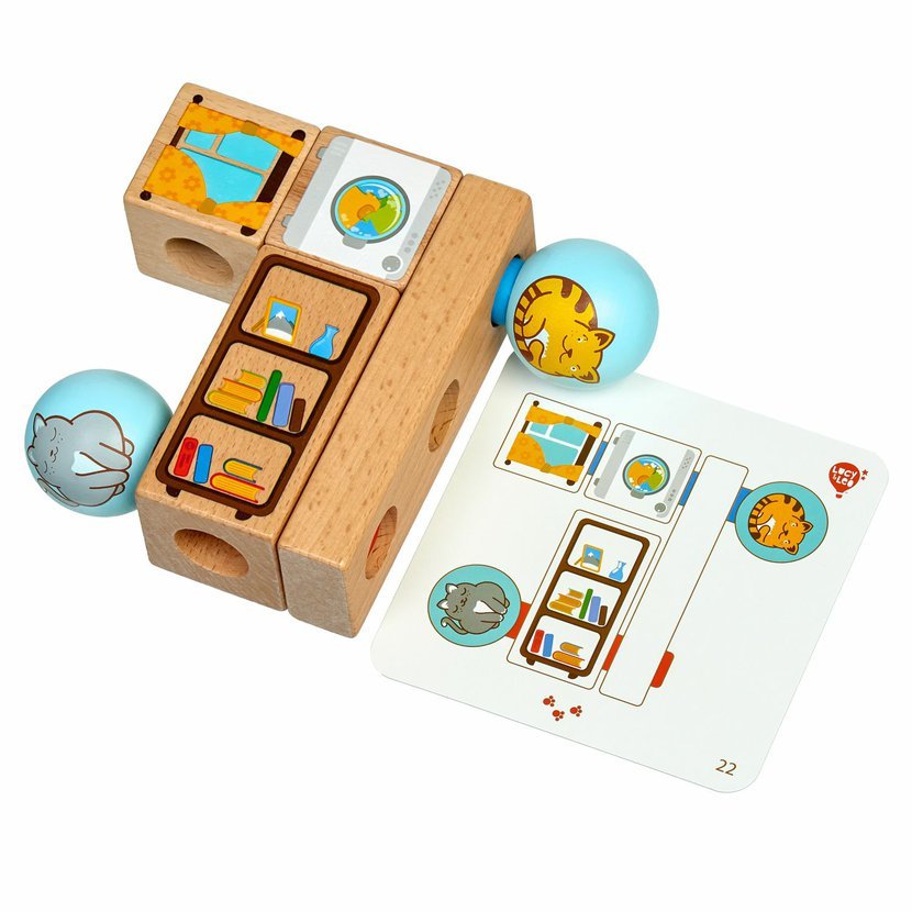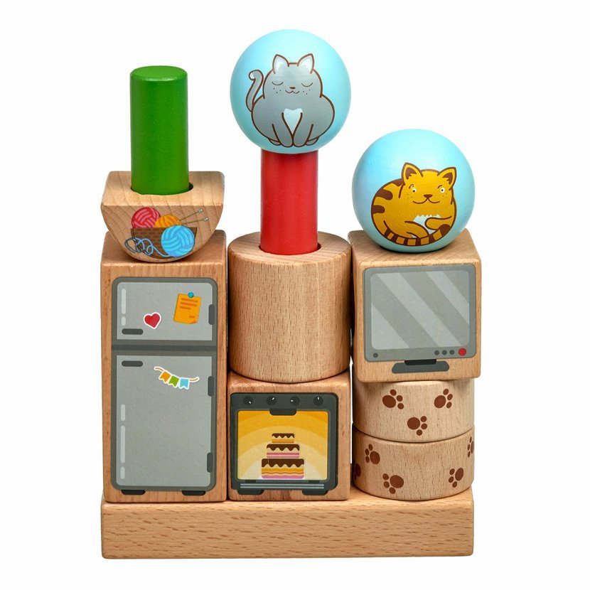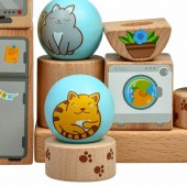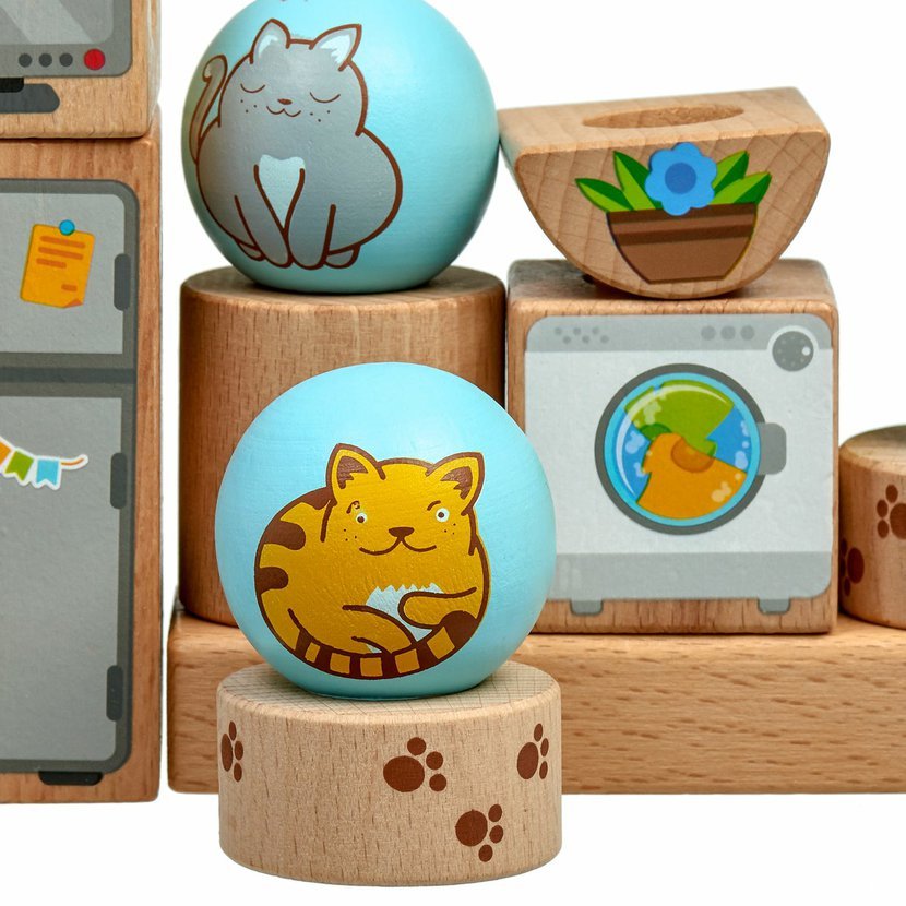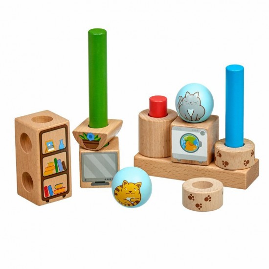 Playful Cats este un joc de inteligenta din lemn, o constructie logica alcatuita din diferite forme geometrice de diverse forme si culori, cu o tematica super draguta despre pisicute.