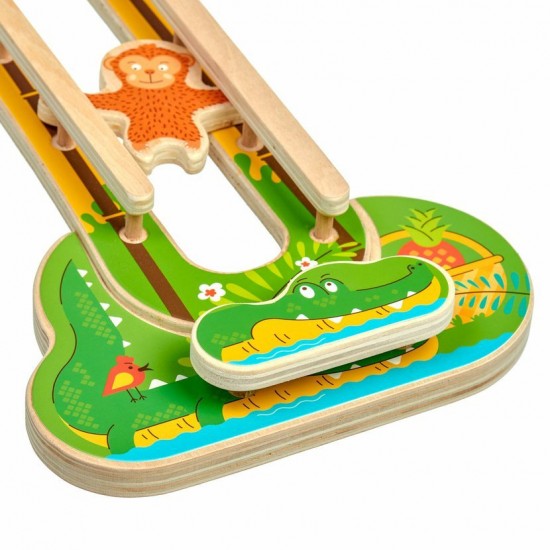 Sly Monkey este un joc de perete in forma unui suport colorat cu o tematica de jungla cu animale.