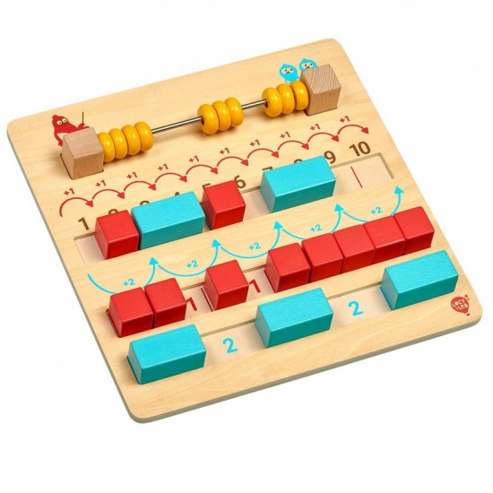 Setul este format dintr-o placa de lemn neteda care are diferite desene ajutatoare pentru un proces de invatare simplu si distractiv. Urmati instructiunile de pe tabla si invatati sa numarati, sa ganditi logic, sa adunati si multe altele. Jocul va fi un adevarat profesor pentru fiecare copilas aducand placere in procesul de cunoastere.