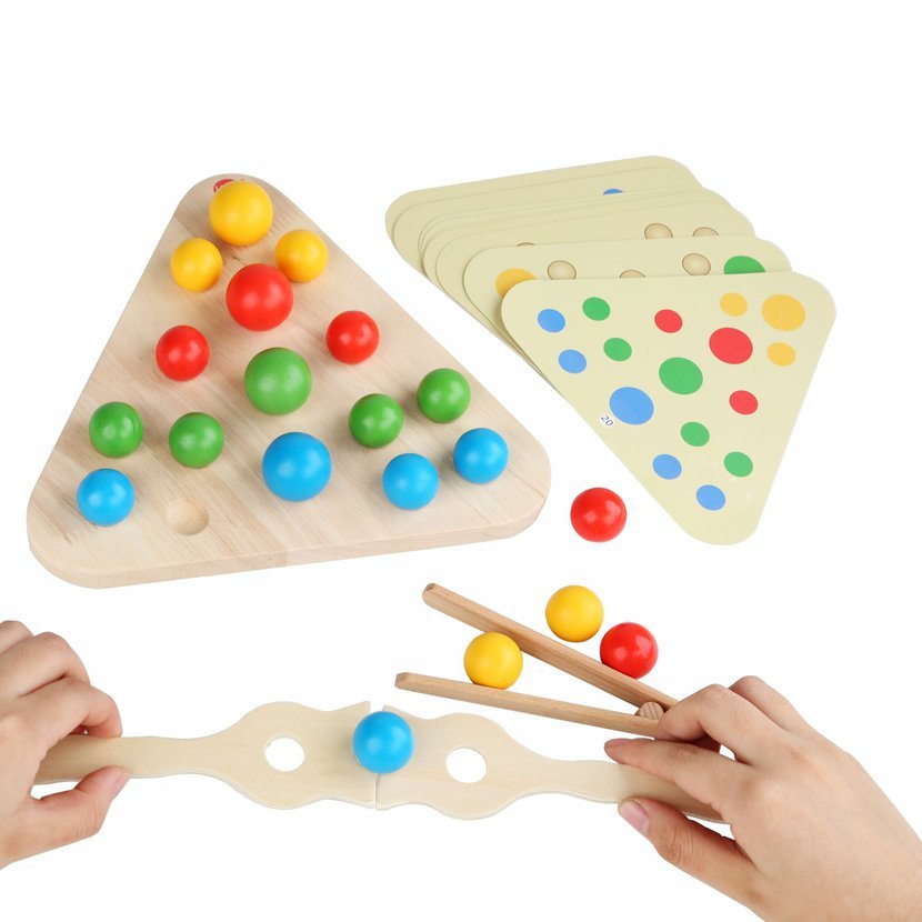 Triunghi magic 2 in 1 - joc din lemn cu sabloane Lucy & Leo