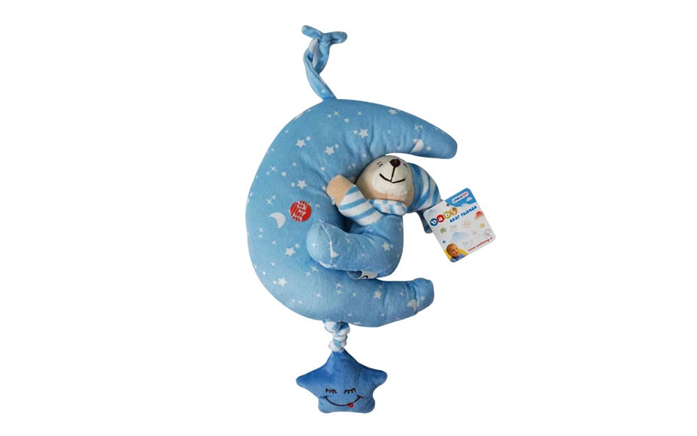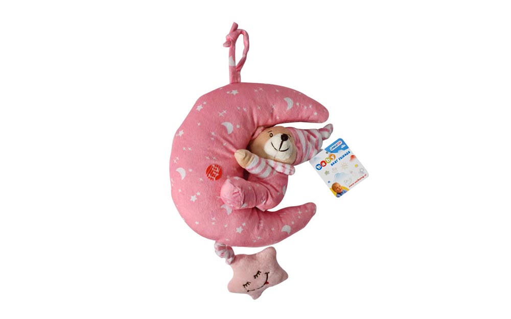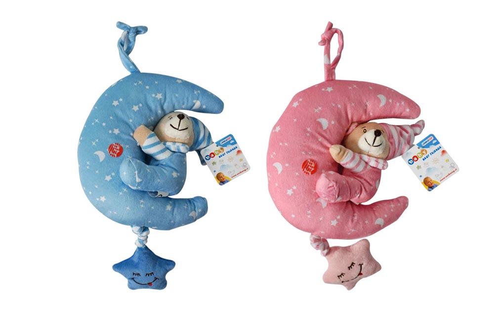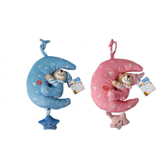 Jucarie muzicala de atarnat Ursulet pe luna 22cm (1 buc.) roz/albastru 23378