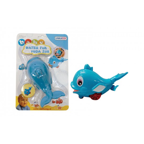 O jucarie vesela in forma de delfin dragut este destinata distractiei in timp ce faci baie intr-o cada sau o piscina. Delfinul va fi de asemenea, o solutie grozava pentru parintii carora copilul le este frica si refuza sa faca baie.