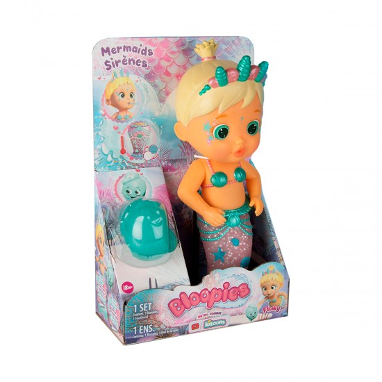 Papusa Flowy 23cm - cu coada de sirena care isi schimba culoarea si scuipa apa Bloopies