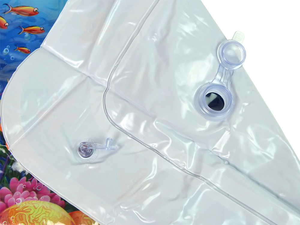 Bucura-te impreuna cu micutii tai de noua inovatie ingenioasa - covorasul cu apa si animale marine. Acesta este confectionat din materiale de calitate superioara care vor asigura un joc eficient si un proces de dezvoltare inteligent. Covorasul este confectionat din doua bucati izolate, fiecare avand proria modalitate de umflare.