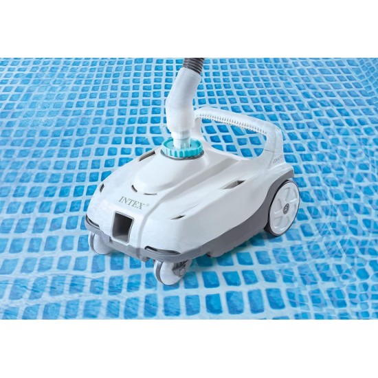 Robotul aspirator automat Intex ZX100 este un dispozitiv eficient pentru curatarea fundului piscinelor supraterane. Functioneaza pe principiul presiunii laterale, conectandu-se la orificiul de intrare al piscinei si utilizand debitul de apa generat de pompa de filtrare.