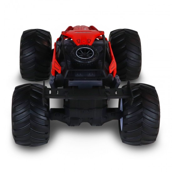 Masina are roti mari din cauciuc, care trec fara probleme peste asfalt, placi de trotuar sau ciment. Sistemul radio de 2,4 GHz ofera control stabil, fara interferente, pe o distanta de pana la 50 m. Tractiunea spate ajuta la manevre dinamice si stabilitate la viteza, iar motorul magnetic asigura acceleratie si putere buna pentru viraje spectaculoase. Masina se poate deplasa inainte, inapoi si poate vira stanga/dreapta, pentru o experienta completa de curse.