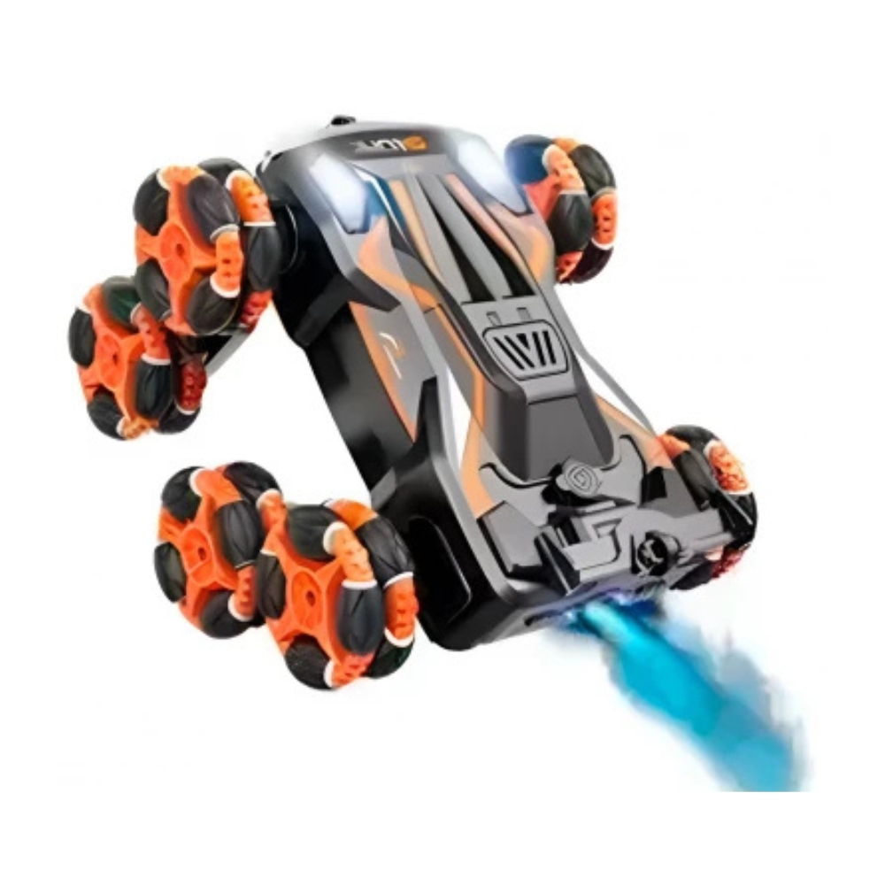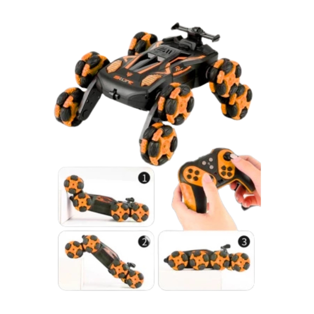Masina Stunt Racer cu 6 roti si telecomanda (RC) este o alegere ideala pentru pasionatii de acrobatii si manevre spectaculoase. Datorita celor 6 roti, aceasta ofera o stabilitate si tractiune excelente, fiind capabila sa execute o gama larga de miscari impresionante.