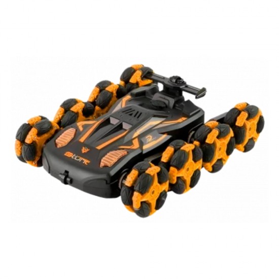 Masina Stunt Racer cu 6 roti si RC, lumini, control viteza si lumini, acumulator 3.7V, oranj, ZJA355679