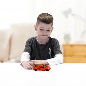 Modelul este la scara 1:43 si are caroserie metalica rezistenta, gata pentru joaca activa. Usile din fata se deschid, oferind un plus de realism si posibilitatea de a inventa multe scenarii de joc. Functia pull back face distractia si mai mare: tragi masinuta inapoi, o eliberezi si ea porneste singura inainte, ca intr-o cursa adevarata.