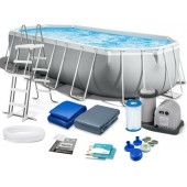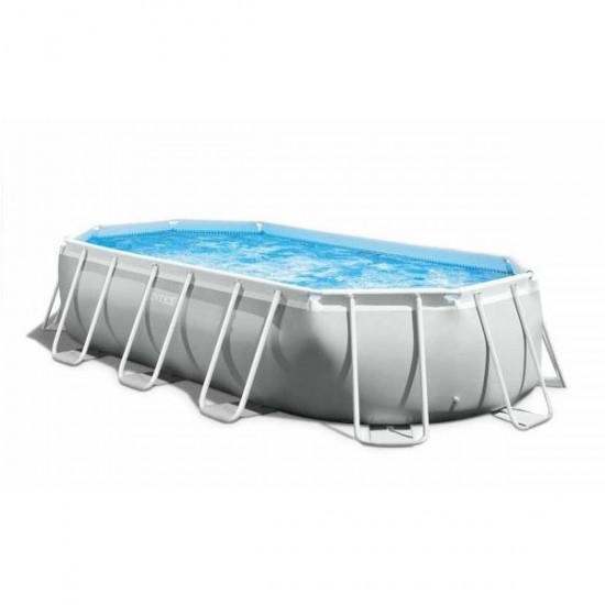 Piscina Ovala Premium Intex Prism Frame, 610 x 305 x 122 cm, 18202 L, Set Complet: Pompa, Scara, Prelata si Covoras