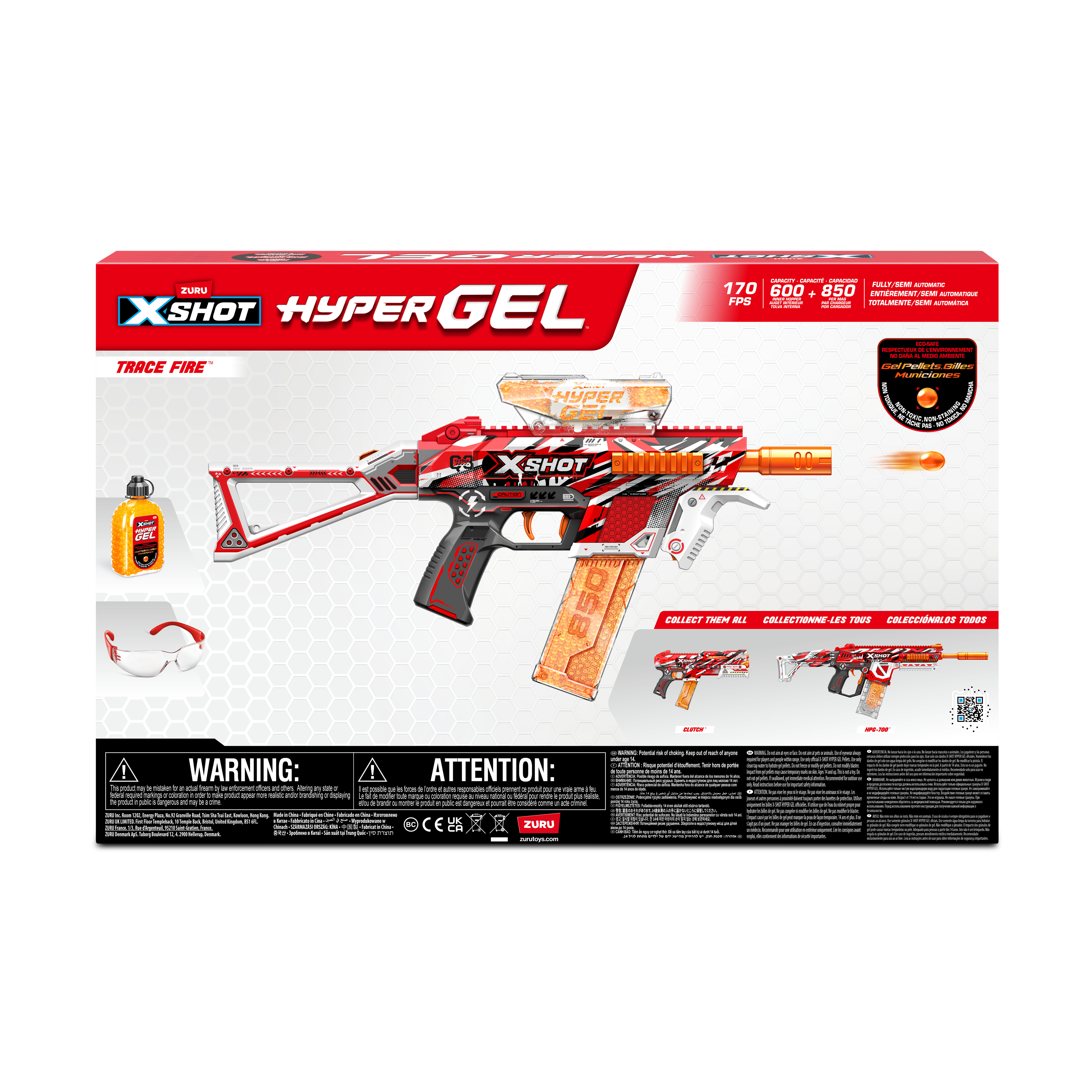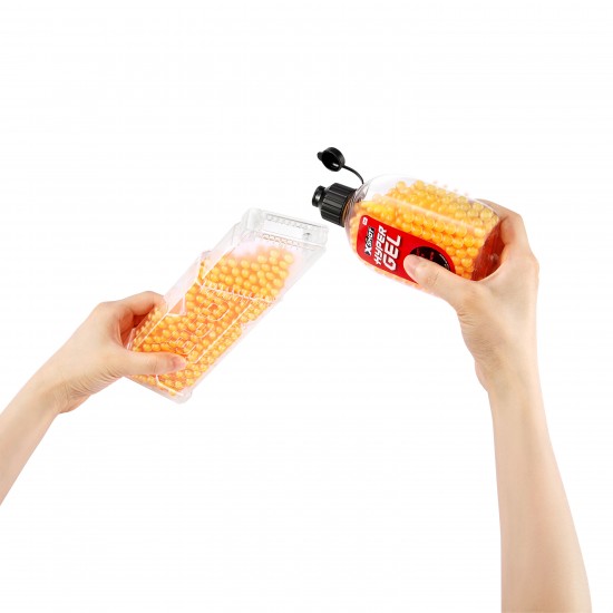 Setul include un blaster X-Shot Zuru Hyper Gel Medium S1, o rezerva cu 10000 bile de hidrogel si o pereche de ochelari de protectie.