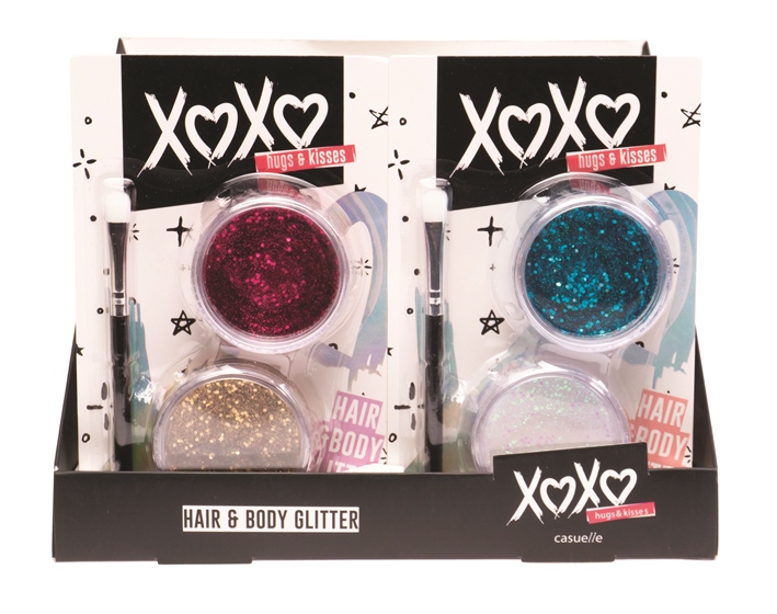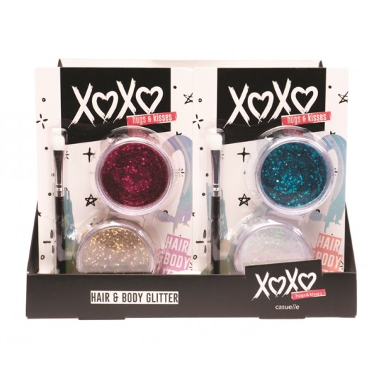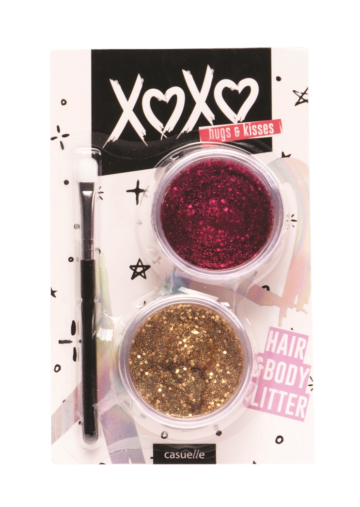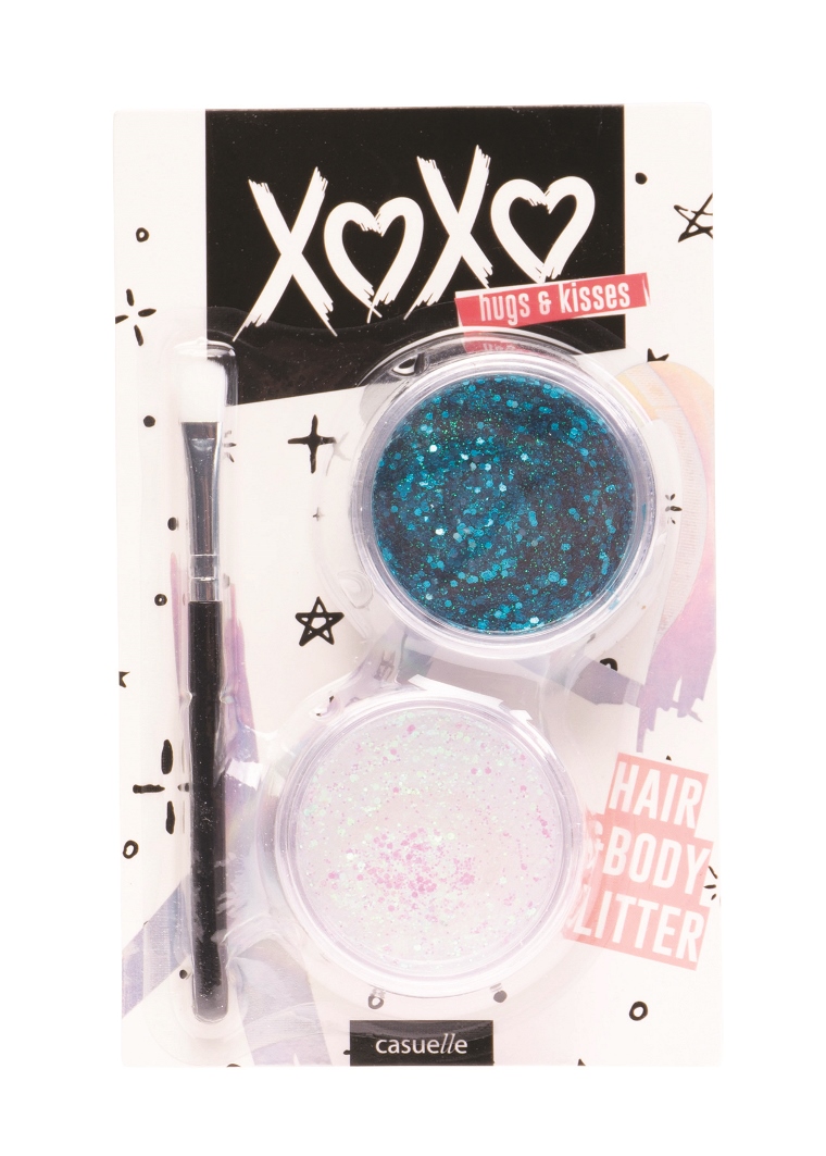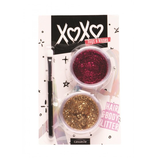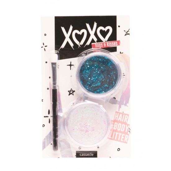 Sclipici pentru par si corp cu pensula Casuelle XOXO 2 tipuri