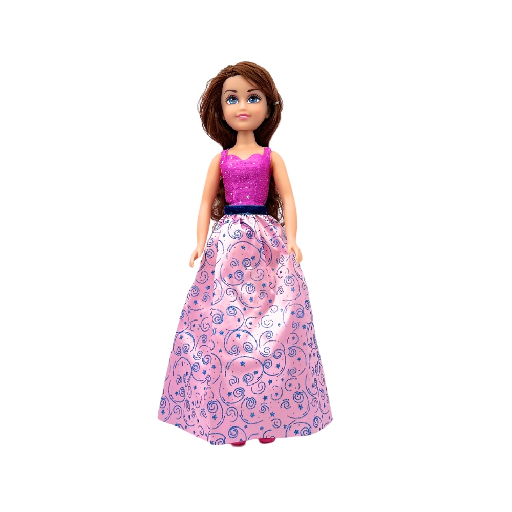 Aceasta papusica este un cadou excelent pentru fetitele care iubesc sa creeze lumi fantastice si sa joace roluri diverse. Aceasta papusa printesa este disponibila in doua variante, cu par blond si cu par saten, lung si matasos care poate fi pieptanat si coafat.