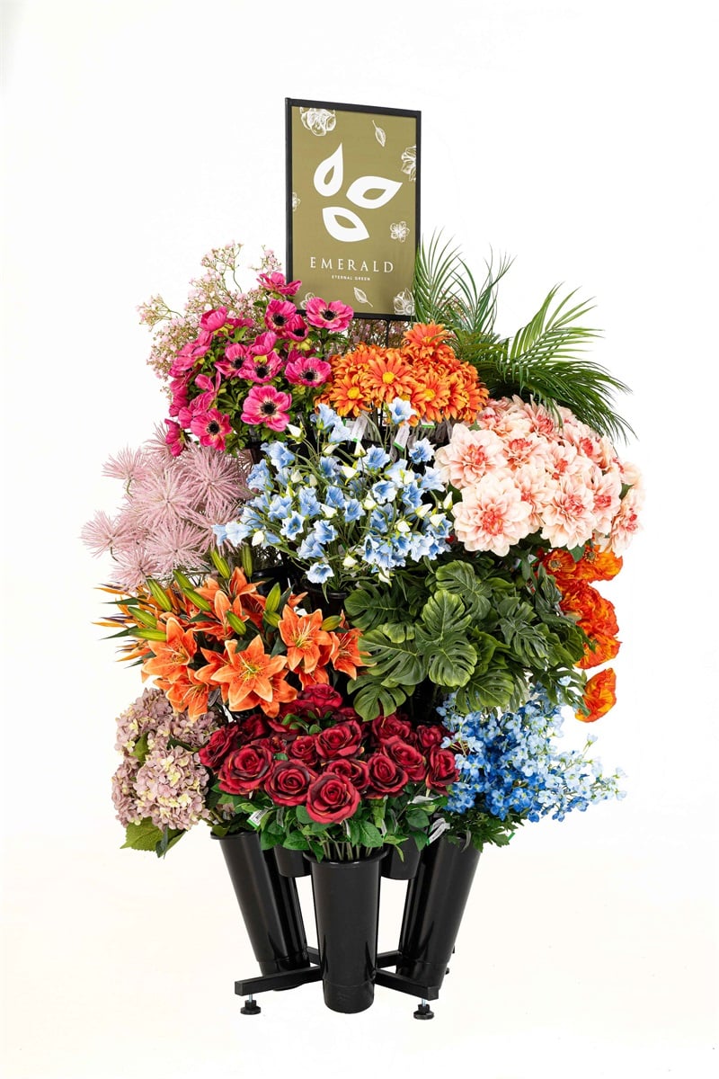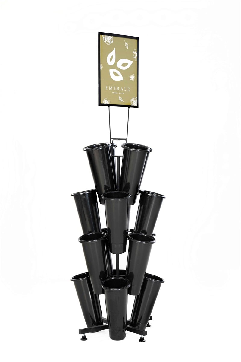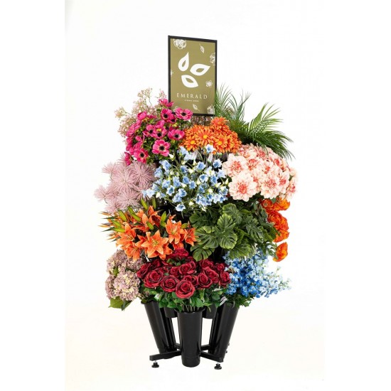 Acest stand decorativ pentru flori este dotat cu suport pentru card promotional si afisaj superior, fiind perfect pentru organizarea produselor in magazin. Livrat fara cele 16 vaze incluse.