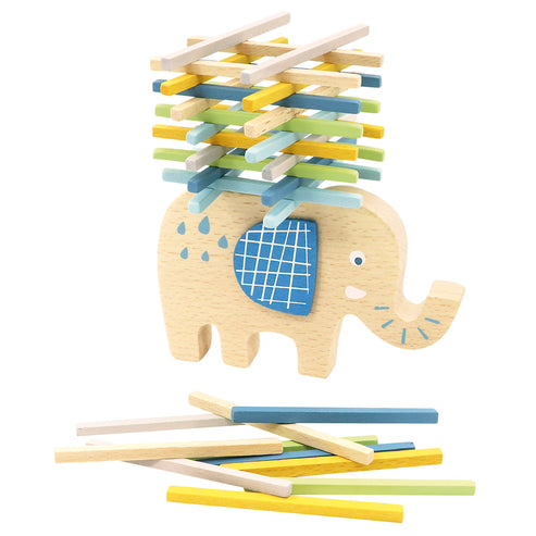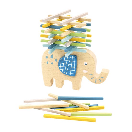 Elefantul este un animal puternic, dar poate duce o astfel de incarcatura de lemn pe spate? Plaseaza bete de diferite culori pe figurina, astfel incat sa faci urmatoarea miscare cat mai dificila pentru oponenti, iar acestia vor dezechilibra in cele din urma incarcatura sau elefantul. Intr-un mod distractiv, poti antrena concentrarea, abilitatile motorii fine si gandirea strategica in timp ce joci. Fabricat dintr-o combinatie de lemn masiv si placaj puternic, tratat cu culori inofensive.
