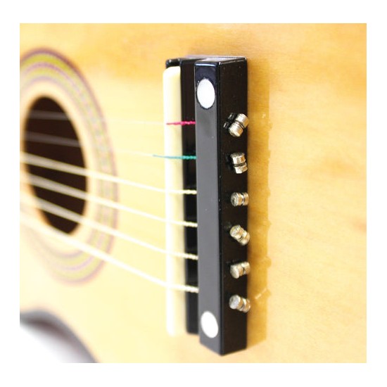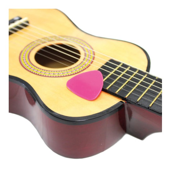 -confectionata din lemn de calitate si vopsita cu vopsele non-toxice, aceasta chitara de jucarie ii va introduce pe copii in lumea fascinanta a sunetelor si le va starni interesul pentru muzica.