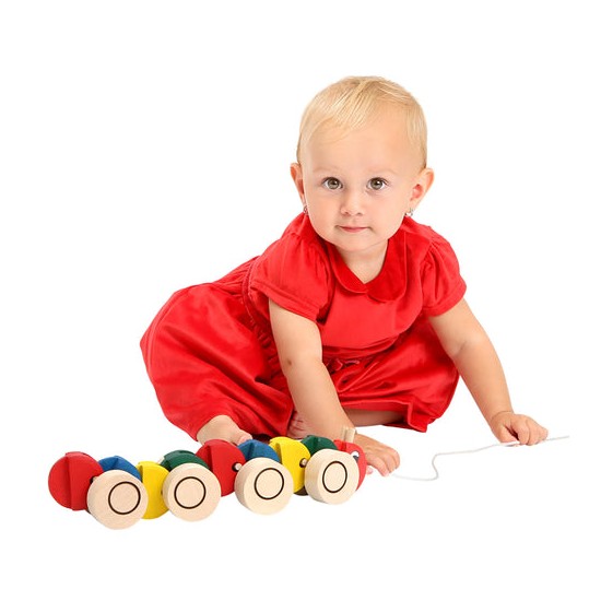 Aceasta jucarie colorata din lemn de inalta calitate imita miscarile omidei, care este distractiv de urmarit.