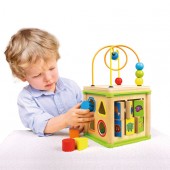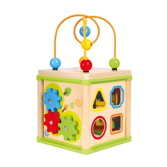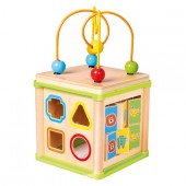 Cubul educativ este o jucarie motrica datorita partii superioare care reprezinta un traseu complicat pe care se misca bilele, este o jucarie educativa pentru ca exista laturi cu labirint, numaratoare, ceas, acestea ajutand la invatarea notiunilor esentiale pentru lumea din jur.
