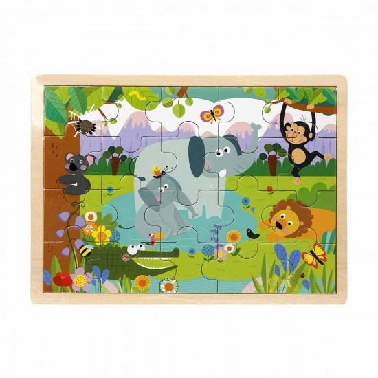 Puzzle din lemn Animale Salbatice 20 el. 30 x 22,5 cm Woody