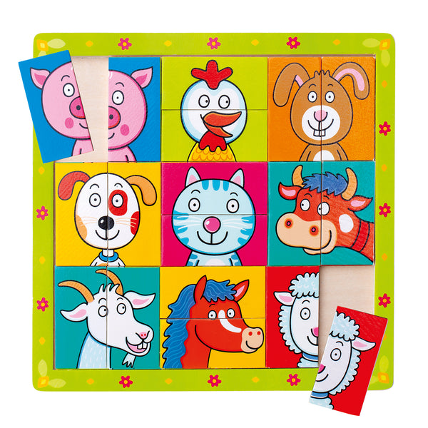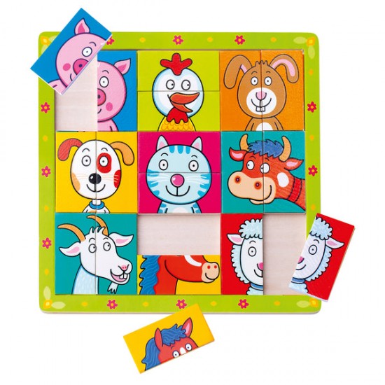 Puzzle din lemn cu Animale este un joc educational foarte util pentru copii, care ajuta la dezvoltarea abilitatilor motorii si la imbunatatirea gandirii logice. Trebuie sa potrivesti jumatatile pentru a descoperi fiecare animalut. Ideal ca joc pentru calatorii in masia, in avion sau in mediul rural.