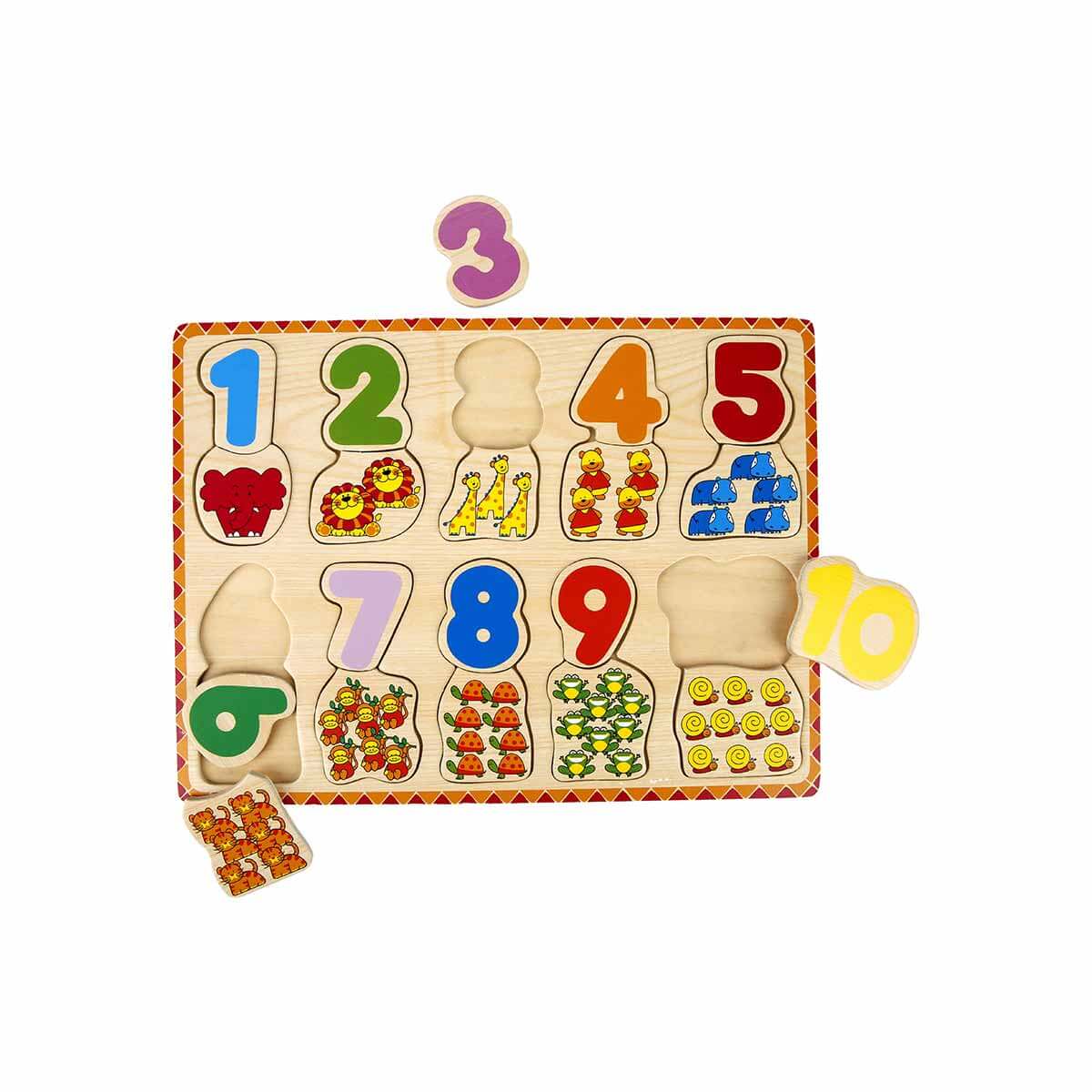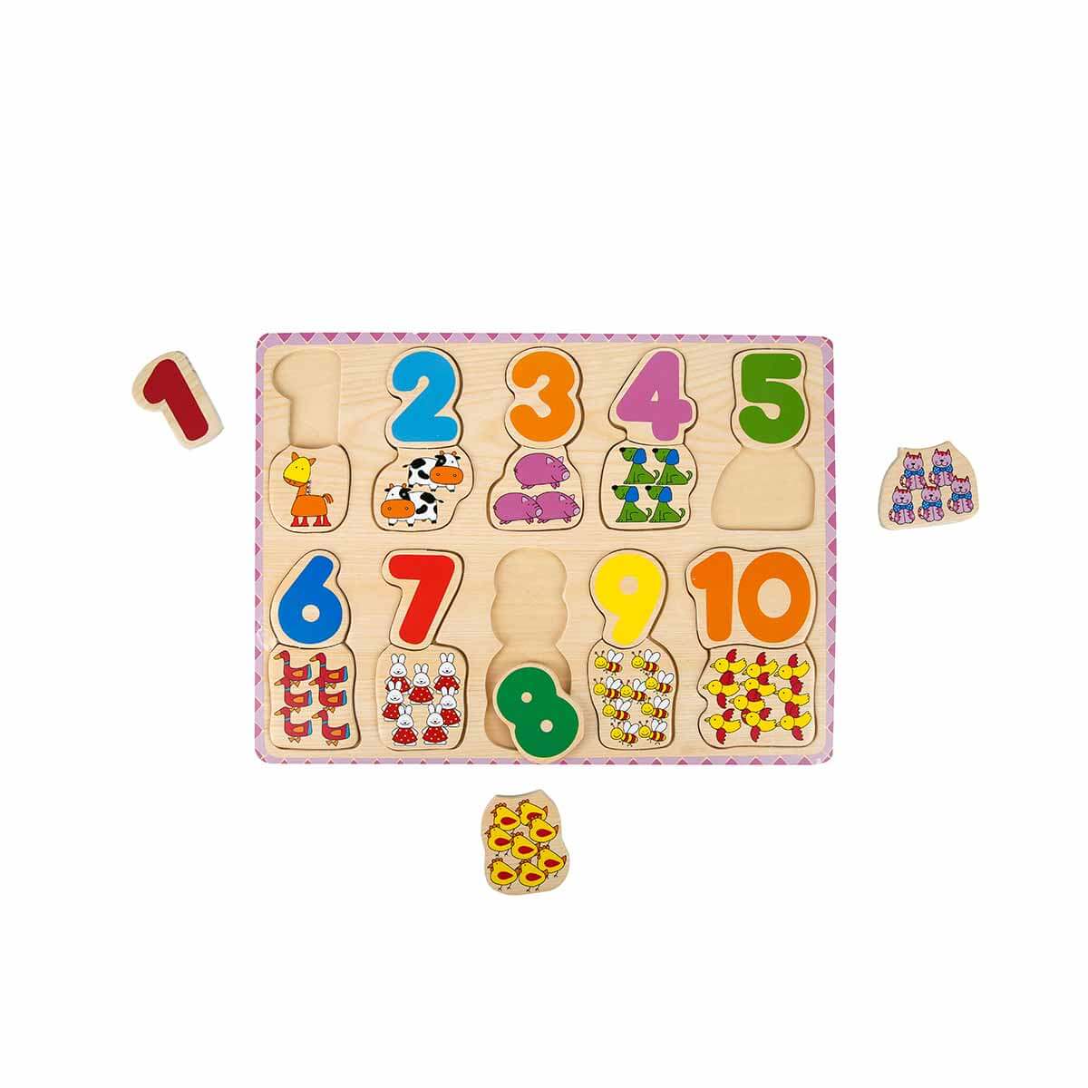 Puzzle din lemn Cifre-Animale 30 x 22,5 cm. 2 tipuri Woody