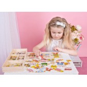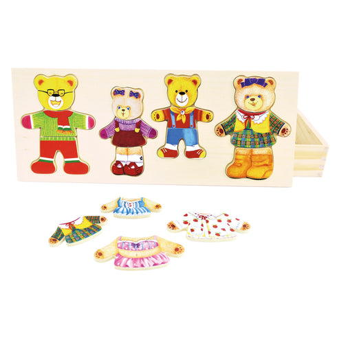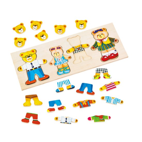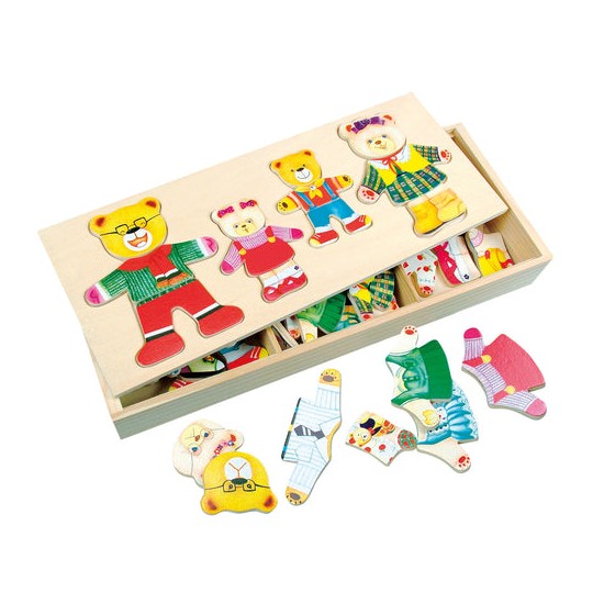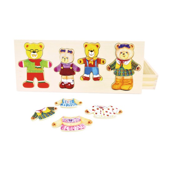 Puzzle din lemn in cutie, Imbraca Familia Ursilor, 72 piese