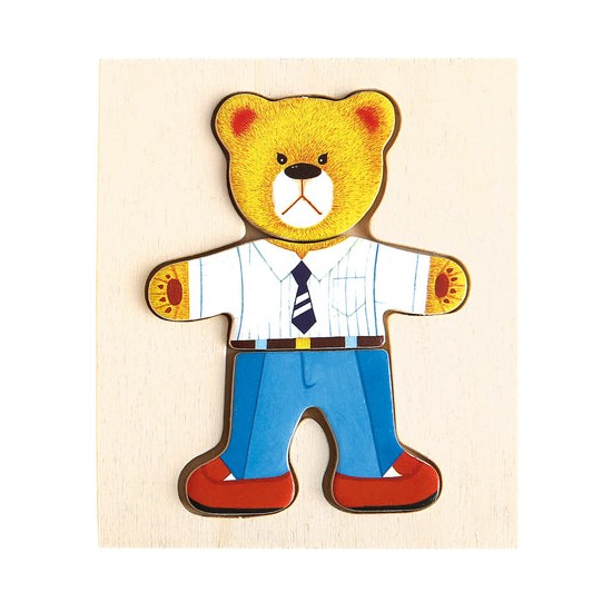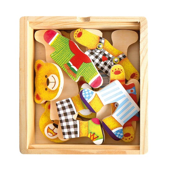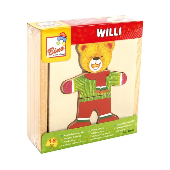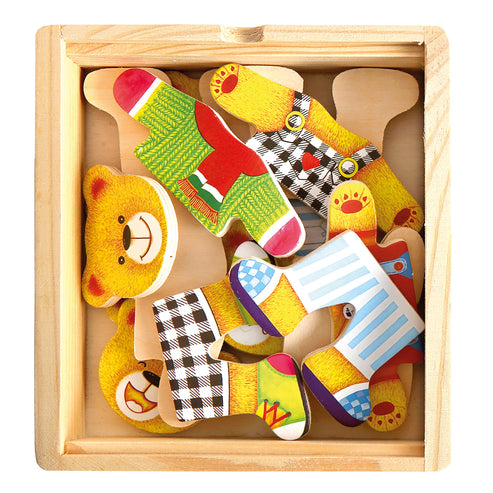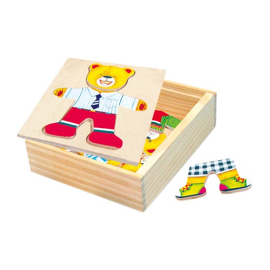 Puzzle din lemn in cutie, Imbraca Ursul Willi, 18 piese